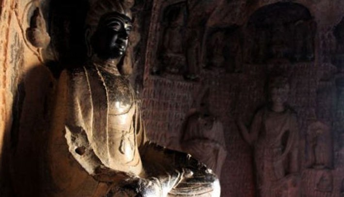 又称万佛寺、石空寺、千佛洞等。位于延安市黄陵县西四十公里处的双龙镇峪村西,石窟开凿于半山石崖间。此窟窟檐为陕西石窟中保留完好的原物,是研究宋代建筑的珍贵资料。石窟平面呈“凸”形,坐西向东,窟口为方形,宽2.4米,深2.6米,有佛像60余尊。窟口左右有佛龛各一个,以二园柱与洞口隔成三间,成檐廊。上有二层斗拱。这是宋代的仿建筑雕凿,极为壮丽、精巧。中间是入口,走廊两壁浮雕观音菩萨像。石窟内高5.3米,宽9.3米,深12米。正中为佛龛,高3.38米,宽5.9米,深4.73米,内有大佛坐像12尊。中央坐释迦牟尼,两边站立文殊、普贤二菩萨和迦叶、阿难两弟子。窟项正中雕有千手千眼观音一尊。窟内东西两壁雕有高2.8米的立佛九尊,其中东壁有姿态优美的赤足持碗雕像。后壁有五百罗汉和一百徒从脬雕像,场面宏大,气势恢宏,版权所有山东聊城聊之旅国际旅行社有限公司,转载必究!并间以佛说法图、磐涅图。
