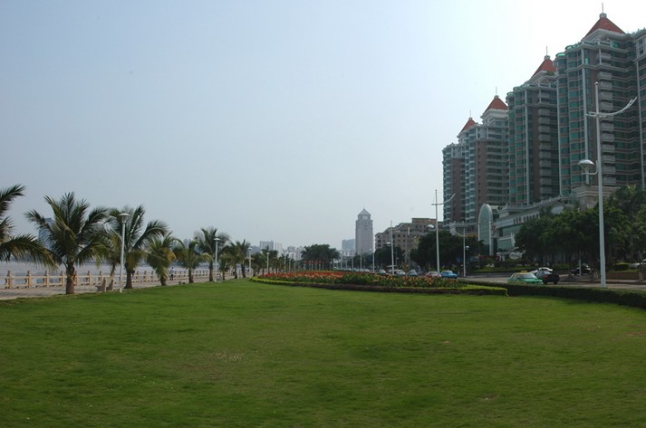 最美最美的风景还是路上双双对对漫步的缠缠绵绵情侣恋人,牵着手,偎依着脸上荡漾着甜蜜的笑容情侣路下便是苍茫大海,近岸的地方有许多小海岛和大礁石,对着岸上的大山近看是一片绿色的海洋,十分漂亮,近岸的山上亭台楼阁,星罗棋布;索道上的缆车参差不齐,来往穿梭。人们把欢声笑语洒落漫山遍野。