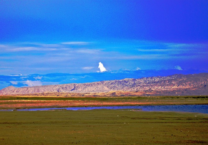 从乌兰县城向西南方向行车约80公里,茫茫戈壁深处便是一抹生机盎然的绿,如一磁场深深地吸引着过客!走近,惊讶!草原、羊群,芦苇、鸟禽,蒙古包、藏獒,更是那清澈的湖水,给人以心灵上的震撼!