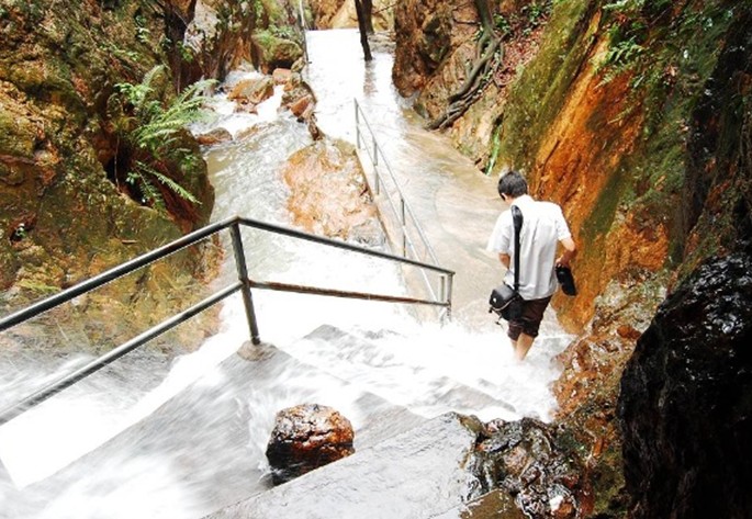 碧玉洞为峰间峡谷,两边怪石嶙峋、谷底狭径崎岖、洞中有玉岩珠瀑,听玉石室、遇仙桥,垂云石、东天湖等景点。其中,玉岩珠瀑为西樵山最大瀑布。