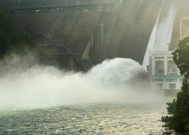 新丰江水库大坝距河源市区6公里,为混凝土结构,高124米,坝顶宽为5米,长度440米,是世界上第一座经受六级地震考验的超百米高混凝土大坝。溢洪段设有3孔。1997年7月11日至14日、8月9日至16日,大坝两次开闸泄洪。泄洪时,湖水从闸奔泻而出,伴随着雷鸣般的呼啸声,卷起千堆雪,仿似一幅蛟龙闹海图,十分壮观。