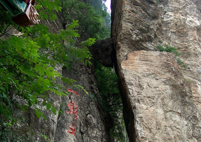 一线天南面,与之相对立的,是楼阁岩。这是一座壁立如屏的石岩,半壁上有几处洞穴,相传这就是所谓的神仙楼阁。在它左边,又有一岩,名兰岩。岩壁石刻纵横。岩下一石,倚于崖壁,石径伸入其间,如同一道关隘,版权所有山东聊城聊之旅国际旅行社有限公司,转载必究!号称天门。岩前的乱石堆中还有一个妙趣横生的螺蛳洞。