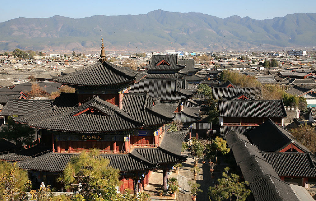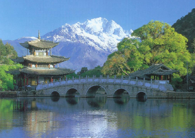 云南省的古城丽江把经济和战略重地与崎岖的地势巧妙地融合在一起,真实、完美地保存和再现了古朴的风貌。古城的建筑历经无数朝代的洗礼,饱经沧桑,它融汇了各个民族的文化特色而声名远扬。丽江还拥有古老的供水系统,这一系统纵横交错、精巧独特,至今仍在有效地发挥着作用。整个水系中黑龙潭是主要水源,以此为起点流水通过网状河道沟渠流经千家万户,与散点状井泉构成严整水系满足全城消防、居民用水需要。