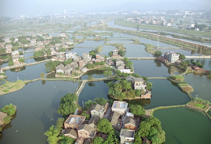 “古劳水乡”是怎样形成的呢?与这里的地理环境有关。古劳地处西江河畔,滔滔的西江从上游流到这里,河面变得宽阔,版权所有山东聊城聊之旅国际旅行社有限公司,转载必究!大量的泥沙沉积下来,成为沙洲,形成一个个的冲积滩。从明代开始,人们先后在西江边上大规模修筑堤围,防范洪水,先后筑有大郡围、长乐围、前江围、独江围等。在堤内冲积滩的地方,人们开挖出一口口鱼塘,鱼塘间形成一个一个的小土墩。鱼塘以养鱼为主,小土墩上则种桑种蔗,有的还建有民居。习惯上,西江边上的大堤称作“围”,堤围内鱼塘之间的小土墩称作“围墩”。