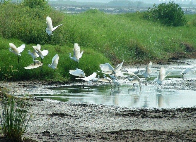 新会银湖湾阡陌纵横,水网交织,蓝天与绿洲互相辉映,融江、海、湖、田、山、水于一身,有着其他地方无可比拟的生态旅游特色。放眼望去,在绿油油的田野中、围堤上,傲立着几棵高大的木棉,红艳艳的木棉花与周围的绿树交织成一幅红绿般配的乡土美景。果园里弥漫着阵阵浓郁的芳香,那浓香扑鼻的,便是阳山桔的花;房前屋后的桔树,开满了桔花,远远望去,树冠上仿佛堆了一层厚厚的白雪,到处是桔花的清香。微风吹来,招引着蜜蜂来采蜜,一朵朵洁白的桔花不住地摇摆着手臂好像在欢迎外来的游客。