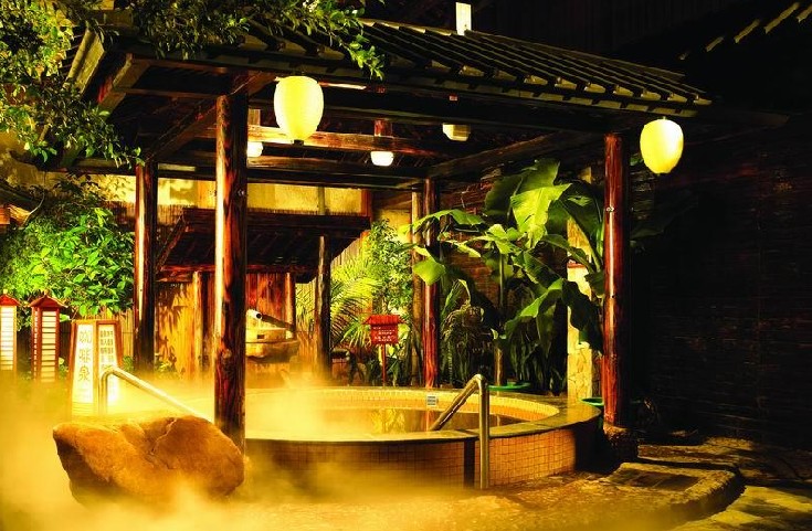 御温泉内按不同需要和功能分为灵芝汤、鲜人参汤、当归汤、薄荷汤、艾叶、三丫苦汤、芦荟汤等池子,客人还可享用各种特色温泉池、桑拿、蒸汽浴、健身房、香薰屋及饮品。明月松间,清泉石上,树影婆娑,氤氲香弥……每一个走进御温泉的人都仿佛走入一片久违的山水田园。御温泉设有天然温泉华兴池、花草温泉、木温泉、咖啡温泉、酒温泉、瀑布温泉、音波喷射温泉、石温泉,以及成人、儿童温泉游泳池和设备齐全豪华的健身中心等十余种不同类型的温泉浴服务。御温泉建有10多套独立室内温泉浴池的园林式贵宾休息房。还配有大型蒸气浴和桑拿浴室及40多间标准按摩、推拿室,供游客浴后接受保健按摩,增强泉浴的疗效。