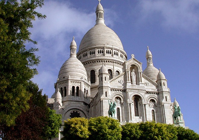 蒙马特高地至高点上的这座突出的纯白建筑就是圣心教堂(Sacré-Ceour),这里以其视角广阔,景色如画而著称。在巴黎这个浪漫之都海拔129米的山丘之上,挺立着这座宏伟的建筑,因相对高度较高,圣心教堂让所有的参观者都有高山仰止的感觉。从圣心教堂所在的山丘往巴黎市中心看,巴黎的千年历史尽收眼底。人们也可以登临圣心教堂中心最高的大圆顶,从那里能看到周围方圆50公里内的景物。这里是艾菲尔铁塔之后巴黎的第二个至高点。从埃菲尔铁塔上您看到的是辉煌的巴黎,犹如参观中国的故宫博物院,从这里俯视下去的巴黎则是一个平实的巴黎,让您有好象闲逛北京小胡同的感觉。