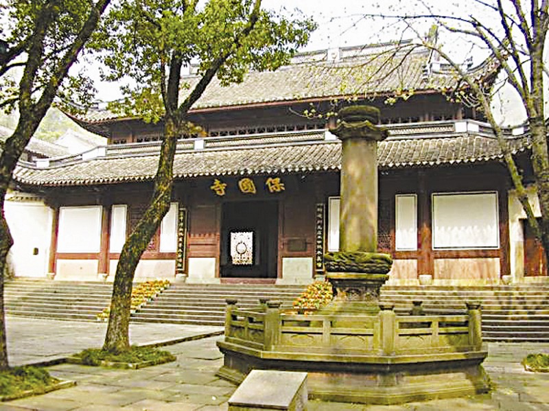 保国寺历史悠久,创于东汉,建于唐代,兴于北宋,现存大殿即为北宋祥符六年(1013年)所重建,是江南最古老、保存最完整的木结构建筑,具有很高的历史、艺术和科学价值,为江南一绝的古建筑瑰宝。保国寺内殿宇古老素朴,园林绿树繁花,是一个罕见的文化、生态完美交融的旅游园区。它坐落在宁波市江北区灵山山腰,自南向北分布有天王殿、大雄宝殿、观音堂和藏经楼,两侧有钟楼和鼓楼连接其他建筑,错落有致,大殿前有水池,池水清澈,四季不涸。寺内大殿为北宋时期的建筑,在中国建筑史上具有很高的历史、艺术和科学价值。