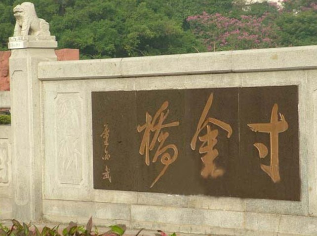 寸金桥位于湛江市赤坎区寸金路原广州湾租界西面界河赤坎河(又称文章河)上。河水连接寸金桥公园月影湖,桥之西为华界,桥之东为租界,是为纪念1898 ━1899年遂溪人民反抗法国强租广州湾的斗争的史志性建筑物。1925年遂溪县麻章区绅民建,原有的“寸金桥”隶书桥名刻石,现存湛江市博物馆。抗日战争时期重修,1959年和1986年扩建,为石砌单拱式水泥桥面桥梁,全长19米、面宽11.6米,单拱园径6.5米,桥面南北两侧各置栏柱,人车分道。桥头东西有董必武、郭沫若题词桥匾,董必武题书“寸金桥”,郭沫若题“一寸河山一寸金”。接着,路改名寸金路,版权所有山东聊城聊之旅国际旅行社有限公司,转载必究!公园改名寸金桥公园,车站和酒家均以“寸金”命名。一九五九年人民政府重修“寸金桥”,并于桥旁立碑(有碑文),从此“寸金桥”成为抗法斗争的一个象征性建筑物。一九六○年,郭沫若到湛江观看粤剧《寸金桥》,题诗有“一寸河山一寸金”之句,“寸金桥”名声更著。 西山公园一九八○年改名“寸金桥公园”(因“寸金桥”在其旁,公园博物馆内有抗法斗争专题陈列)。一九八四年初又于公园内竖立大型雕塑《寸金桥抗法斗争纪念雕像》,参观的人络绎不绝。