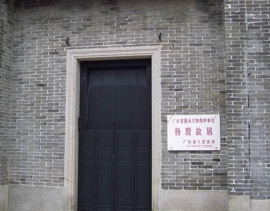 杨殷故居位于南朗镇翠亨村,沿翠亨村大道,在那平整的总理大街中段,一幢石脚青砖,富有中国古建筑形式的房子。始建于清代咸丰年间,座西向东,占地面积1420平方米,建筑面积280平方米。有关部门对杨殷故居进行了修葺,杨殷故居于2002年8月12日正式对外开放,成为旅游景点。
