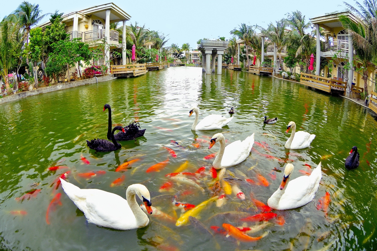 天鹅湖库区南北长8公里,东西宽5公里,总面积近40平方公里,是杭州西湖面积的8倍;堤坝总长71公里,聊城旅游网版权所有聊城聊之旅国际旅行社有限公司,转载必究!设计库容1.14亿立方米,年吞吐量2.2亿立方米,是全国最大的滨海平原水库。库西侧有栈道直通湖心的太阳岛。太阳岛分为4个部分,由"丁"字形栈道连接。第一部分位于进岛东西栈道南侧,主景为宝塔山及长城等;第二部分是位于东西栈道东端的中心岛,是太阳岛中面积最大的主景区,岛上景点众多,亭台楼阁参差错落,假山花圃锦绣迷人;第三部分是自中心岛往南由栈道通连的南海景区,主景是"天涯"、"海角"等;第四部分是自中心岛往北由栈道通连的北海景区,主景是北海白塔、荷兰风车、鸵鸟园等。中心岛设有游船码头,可乘游艇或摩托艇漫游湖区。有4个生物岛布置在湖的4个角部。岛上有鸟类百余种,其中珍禽有白天鹅、灰天鹅、黑天鹅、仙鹤等。湖中有鱼类20余种,其中数量较多的有鲤鱼、鲫鱼、草鱼、鲇鱼、黑鱼等。