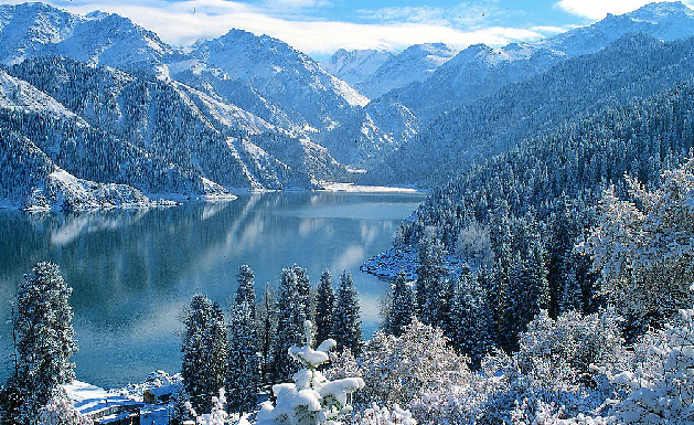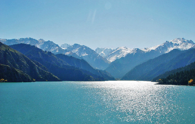 中国新疆维吾尔自治区著名湖泊。在乌鲁木齐东北100公里,博格达峰北坡山腰。湖面海拔1910米,南北长3.5公里,东西宽0.8~1.5公里,最深处103米。湖滨云杉环绕,雪峰辉映,非常壮观,为著名避暑和旅游地。天池成因有古冰蚀-终碛堰塞湖和山崩、滑坡堰塞湖两说。由天池流出的三工河为山麓阜康县农牧业主要灌溉水源。天山天池风景区以高山湖泊为中心,雪峰倒映,云杉环拥,碧水似镜,风光如画。