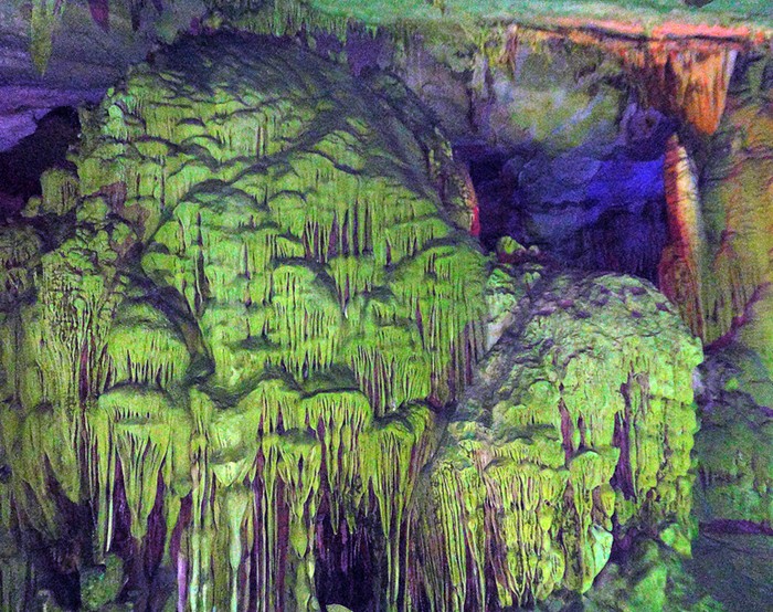 芙蓉洞分三大景区,第一景区以色彩斑斓的高调为主,第二、三景区则以重科学和色调还原自然为主线。洞内比比皆是,一步一景的景观中主要解说景点30余处,其中在国内外属特级景点有10余处,尤其是宽15.76米,高21.04米的巨型石瀑布;面积32平方米,水深0.8米,处在生长旺盛期的珊瑚瑶池;长120厘米,周长124厘米的“生命之源”;生长旺盛的石花之王;世界绝无仅有的犬牙晶花石五绝,是世界洞穴景观的稀世珍品。芙蓉洞是一个大型石灰岩洞穴,全长2400米,洞体高大,版权所有山东聊城聊之旅国际旅行社有限公司,转载必究!宽高多在30至50米之间,其中辉煌大厅底面积在1.1万平方米以上。洞内各种次生化学沉积形态(speleothems,即钟乳石类。芙蓉洞中有碳酸盐岩和硫酸盐岩两类)琳琅满目、丰富多彩。其中大多数种类分布之广泛,质地之纯净,形态之完美,在国内目前的发现中多属少见。尤其是正在形成中的池中珊瑚状和犬牙状方解石晶花,洞壁上各种姿态的卷曲石、方解石和石膏晶花更是国内稀有,世界罕见。各类沉积物所构成的洞内景观,既玲珑剔透,又辉煌壮观。个体华丽精巧,全景灿烂缤纷,令人目不暇接。按规划现阶段开发三大景区,游览线路全程1846米,主要景点约三十处,其中十多处在国内外均可堪称最佳景点。 芙蓉洞游览开发由中国地质学会洞穴研究会在科学调查论证的基础上,按高起点、高标准要求进行整体规划设计。因此,游览芙蓉洞既可获得大自然艺术与神奇的美好精神享受,又可增长许多有益的洞穴科学知识。