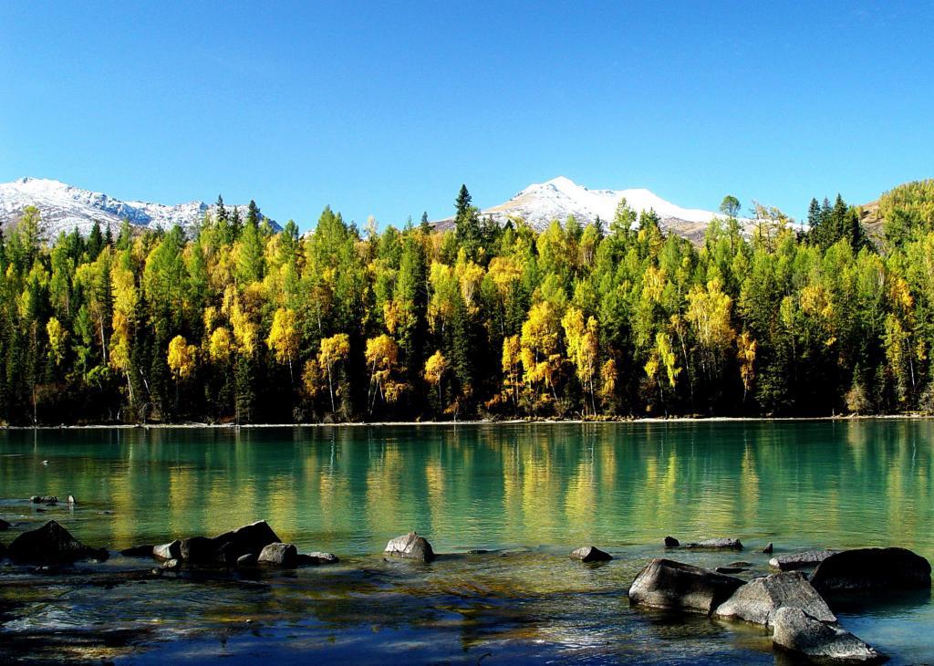 喀纳斯湖会随着季候和天气的变化时时变换着自己的颜色:或湛蓝、或碧绿、或黛绿、或灰白……有时诸色兼备,浓淡相间,成了有名的变色湖。受强劲谷风的吹送,倒入喀纳斯湖的浮木,会逆水上漂,在湖的上游湖湾处聚堆成千米枯木长堤,蔚为喀纳斯湖的一大奇观。