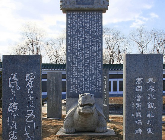 尚志碑林由两大部分组成,版权所有山东聊城聊之旅国际旅行社有限公司,转载必究!一部分为长约600余米的碑廊组成,另一部分为地面碑林,两部分共有碑刻1400余块。碑墙为仿古式建筑,高度平均在4.5米以上, 中间弧型部分高达5米,总长度660米,属全国最高、最长的碑墙,碑群碑高2米多,每方碑连同石座重达2000公斤以上。碑林在内容上突破了我国沿袭的碑林的特点的建造传统,独辟蹊径,巧妙将整个碑林辟为“珠河情缘”、“翰墨滥觞”和“千秋国粹”三部分。