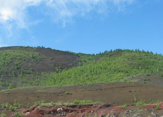 黑龙山南坡覆盖的是火山砾,也称火山灰。火山砾是气体喷发的产物,当岩浆中气体特别充沛时,就喷发出泡沫状的熔岩,冷凝后,随着风向散落在火山周围。根据火山砾的分布情况,可以推测火山喷发时这里刮的是北风或西北风。山体由早、晚两个火山锥体套叠而成,早期的锥体被晚期的喷发破坏并占据,从植被的疏密上可以看出早晚的差别,它是一座休眠活火山。