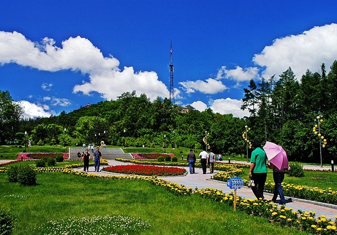 从山底通往山顶有三条崎岖蜿蜒小路、两条人工台阶。拾阶而上,林荫蔽日,树木幽深,景色宜人,累了可在半山腰上的凉亭小憩,边休息边欣赏优美景色,登上山顶驻足远眺,新兴煤城一览无余,远山近水,尽收眼底。山下高楼林立,街道纵横,汽车穿梭,行人如织。遥望远处,不时有一列列装载着乌金的火车轰鸣而过,跳动出新兴煤城繁忙而有节奏的脉波。足踏桃山之巅,你会顿生出“欲穷千里目,更上一层楼”的感慨,近望山脚,人影憧憧,林中游人时隐时现,彩色凉亭与绿树红花相映成趣,山、水、人构成一幅立体的山水画卷,目之所及,会令您顿发百里煤城如此秀美之感叹。 清晨,是桃山公园最有朝气的时刻,人们纷纷来到桃山公园.有扭秧歌的、有打太极拳的、有打羽毛球的、有散步的,人山人海。每个人的脸上都绽放出幸福的笑容。 桃山公园不仅是大人们休闲的好去处,更是儿童的乐园,年轻的父母可以带上他们的小宝贝,双鬓发白的老人可以带着心爱的孙子、孙女,在蹦蹦床上蹦上~番,或乘坐儿童小汽车过一把小司机的瘾,在孩子们的欢笑声中,尽情地去享受美好的天伦之乐。 近年来,政府加大了投资力度,投资700余万元新建两处广场,总面积达12500平方米。二○○一年新建的东广场与学府路相通,造型别致,由山脚一直修到山腰,共有一百多级台阶,每隔一段便修有一个小广场,花草点缀,造型别致,独具特色,还有华丽的路灯,每到夜晚,华灯闪亮,版权所有山东聊城聊之旅国际旅行社有限公司,转载必究!灯火辉煌,由学府路的尽头向广场望去,路灯像串串明亮的珍珠,一直通往山顶。