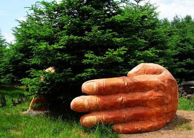 由木制儿童娱乐设施及木制小品组成,给凝固肃穆的木雕增添人气与活力。儿童设施又使生命这一主题披上灵性的色彩,突出了人与自然亲和如水的理想境界。 为呼唤人们珍视生灵、爱护环境的意识,在木雕园西侧,辟建了一处生态警示区。通过干涸的水井、腐朽的树木、荒凉的沙漠、磷磷的白骨,告诫人们破坏环境,等于消灭人类自己,珍爱环境就是珍爱我们的家园。 木雕园在整体设计风格上,以烘托自然氛围,弹拨自然韵律为基调。园中甬道的路板,人们休闲的座椅,树根型的花盆,矮小的篱障,虽是用以假乱真的水泥工艺制成,却给人以身在林区,地处天然之感。每到夜晚,这里灯光如昼,灿若星海。在迷蒙的夜色中,群雕的刚武,小园的温馨,向人们舞动着的是另一种风情和韵味。木雕园依偎在一湾清波之畔,伫立于绿树花草之中,相约于远山,簇拥着林城,飘逸着如诗如梦的情愫。畅游木雕园你会神驰于那鸿蒙初开的远古,在原始图腾崇拜中辨认历史长河的足迹;你会遨游于那天人合一的未来,在人与自然的亲融中超越着自我。我们愿木雕园的良辰美景能让您进入物我两忘的境地,我们愿您再次光临中国林都木雕园,去领略木雕园更新、更美、更遥深的意境。