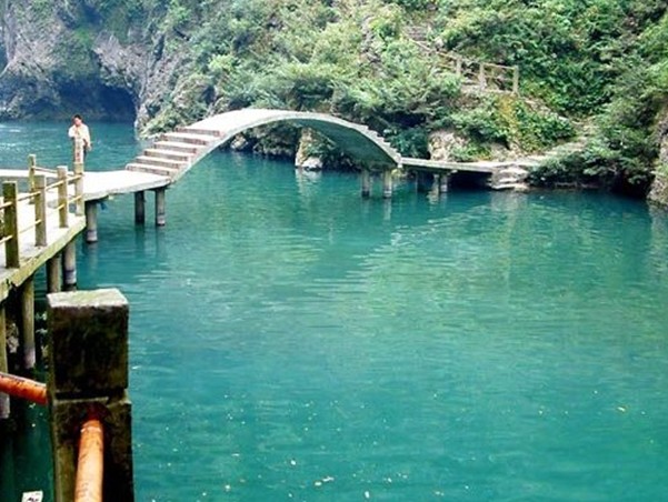 其中心景点为三江汇合处,三水斗奇,景致颇佳。溯三江而上,南连鱼梁江古渡口响琴峡,北望沙河之滨的道教圣地福泉山,西走诸梁江畔仙人洞。在三江汇合处,绝壁高峻,雄浑磅礴,江心兀立巨石一块,高约数十米,称“将军过河”,又有张三丰赶羊遗下的“金鞭石”之说。距沙河水约50米处,有一道瀑布,其下横生一石,称“金龟戏瀑”。 洒金谷的景物都有一个个美丽的传说,如“牛王投井”、“黑熊抱美女”、“豆腐桥”、“草鞋井”等等。古城垣、古桥、古驿道、古摩崖石刻,让游客置身一个远离现代喧嚣都市的净土。“豆腐桥”更以其精湛的造桥工艺载入了中国桥梁史。版权所有山东聊城聊之旅国际旅行社有限公司,转载必究!在桥头还保存着历代骚人墨客留下的咏桥诗篇。
