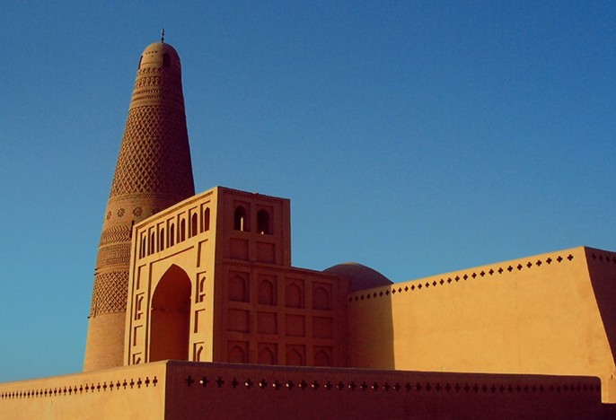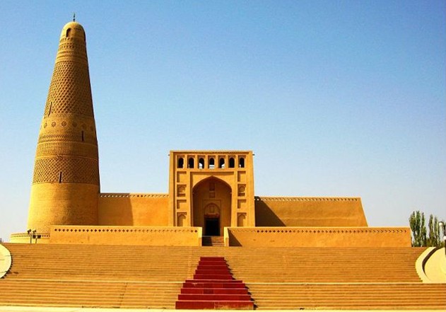 额敏塔坐落在新疆吐鲁番市葡萄乡木纳尔村南面的一处开阔台地上,西距吐鲁番2公里,东面与安乐古城相邻。