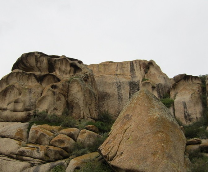 怪石沟是由花岗岩组成的穹窿构造的山地,经过亿万年的风霜雨雪的侵蚀。这里岩石裸露、怪石嶙峋,石群奇特美妙,呈现出千姿百态的自然景观,如天狗望月、石猴母子、大象戏水、迎宾将军石、黑熊探海、唤云峰、沙鱼石、孔雀石、乌龟石、野猪石、鹰嘴石、羚羊石、犀牛石,还有曲径通幽、天桥横贯的异境。真是鬼斧神工,自然天成,令人惊叹不已。怪石峪的古代岩画又是一道景观,主要是狩猎图和动物岩刻画。怪石峪还有许多突厥古墓,距今有1300多年历史,是游人考古探秘的理想去处。