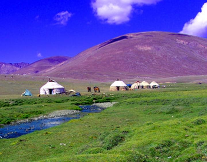 山谷长约六七公里,宽仅二三公里,版权所有山东聊城聊之旅国际旅行社有限公司,转载必究!有3个高山湖泊,均由高山雪水融化而成,中有小河环绕形成一些小湖泊,山水相映,空气清新,鱼游鸟鸣,风景十分秀丽,海拔高度约2700米。哈萨克语称此地为“玉什库勒”,意即三个湖。