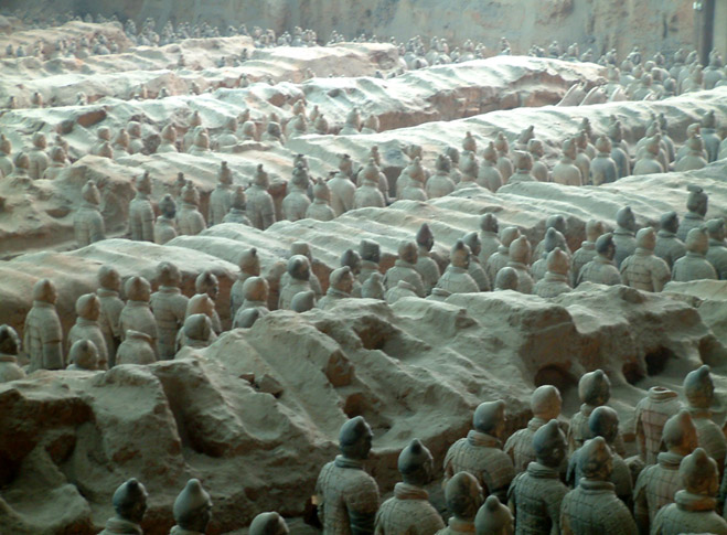 模拟的秦陵地宫,虽然只能让人对秦始皇陵有个粗略的了解,但也更令人对真的秦始皇陵产生无尽的想象:秦始皇陵,这座中国历史上的第一个皇帝陵园,至今尚未开发,里面不知还埋藏着多少珍宝,也不知还有多少玄机……