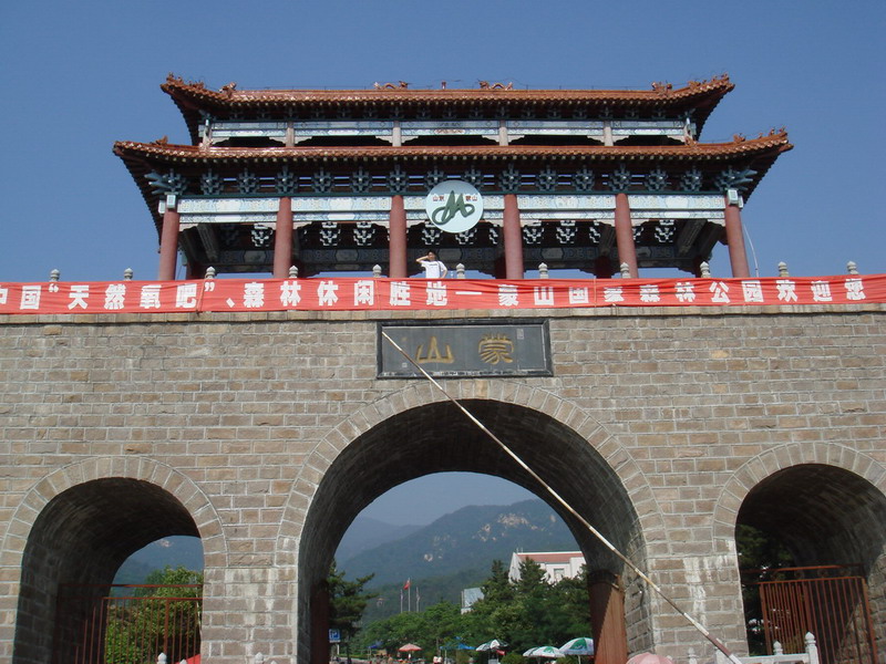 蒙山森林公园大门,位于山东省临沂市蒙阴县桃墟镇花果庄村,GPS导航目标:地理座标为北纬35度33分40秒,东经117度58分19秒。