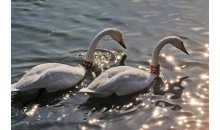 荣成成山卫天鹅湖位于成山镇境内,是中国北方最大的天鹅湖。这里明清时为防务要地,明末曾试图在这里开凿至朝阳港的运河。近世由于泥沙淤积,港湾逐渐变成半封闭的椭圆形泻湖。湖内面积有6.3平方公里,平均水深为2米,最深不过3米,一月份平均水温为0.9℃,湖面很少结冰,湖中繁衍栖息着大量的小鱼小虾和浮游生物,是大天鹅冬季的理想生存之地,吸引了国家一类、二类保护动物近300种十几万只珍鸟。