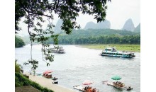 刘三姐水上公园,位于阳朔县城至普益乡留公村一段18公里漓江下游,是闻名中外的电影《刘三姐》外景拍摄地,这里山清水秀,江面宽阔,群峰倒影,村庄田园,翠竹掩映,宛如一幅幅奇妙山水画卷,在此不仅可观赏秀美的自然山水,还能体验浓郁的本土文化:刘三姐对歌、捕鱼表演、傩舞表演和壮乡婚俗。本地人称为“钻石水道”,也称“刘三姐水上公园”。漓江下游风景区主要指这段漓江流域。