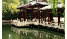 龙潭,位于济南旧城西门外,洛源桥北,南临趵突泉,北接大明湖。潭周名泉众多,形成五龙潭泉群,为济南四大泉群之一,内有泉池二十七处。公园的建园风格兼具有南北造园之精华,是以潭池溪港等景观构成,质朴野逸为特点的园林水景园。此水域风景秀丽,柳丝醮波,鸣禽啾啾,荇藻漂浮,锦鱼嬉戏,素有“夹岸桃花,恍若仙境”之美誉,风景幽雅独具特色