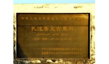 重建后的烈士墓碑,采用北京房山汉白玉,碑身高2.2米,底宽1.4米,顶宽1.28米,厚0.7米。正面是烈士墓碑题字,背面是用汉、维、哈、蒙四种文字镌刻的烈士简历碑座、墓身份别采用泰山花岗岩和天山花岗岩磨制而成。碑座上精雕细刻着象征高洁的雪莲花。晶莹洁白的墓碑,庄重肃穆。