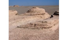 阿勒泰五彩城北距富蕴县城约280公里,海拔约650米。阿勒泰五彩城外观属丘陵地形,是受风力和流水作用形成的侵蚀台地,高一般10――20米,最高约50米,分布面积近10平方公里。 一般由倾角不大的侏罗纪地层构成的阿勒泰五彩城,岩画凹凸相间,岩石色泽多变,以红为主,间以绿、黄、白、黑及过渡色彩,酷似五彩古堡。阿勒泰五彩城与乌尔禾魔鬼城的雅丹地貌相比更具有良好的视觉效果。