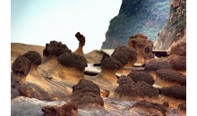 野柳风景区位于台湾省基隆市西北方约15公里处的基金公路,是一突出海面的岬角(大屯山系),远望如一只海龟蹒跚离岸,昂首拱背而游,因此也有人称之为野柳龟。受造山运动的影响,深埋海底的沉积岩上升至海面,产生了附近海岸的单面山、海蚀崖、海蚀洞等地形,海蚀、风蚀等在不同硬度的岩层上作用,形成蜂窝岩、豆腐岩、蕈状岩、姜状岩,风化窗等世界级的岩层景观。