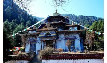位于墨脱村南则玛拉山上。是墨脱最大的寺院。建寺时间是在门巴东迁后不久,距今约8代人。据传是由甘布寺中的活佛甘布建筑的,最初是一座有12面墙和东西南北四门的石木结构三层建筑,内有镀金铜佛像多座。1950年毁于地震,后重修为东西两门建筑。仁钦崩寺的建寺时间是在门巴东迁后不久,距今约8代人。这一建筑物很有特色,值得一看,寺院内外景色优美,古木鲜花将这里装扮的古朴而典雅,让人沉浸在这古老的文化和美丽的景色之中。