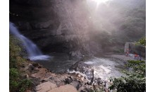 豫西大峡谷风景区,位于豫、秦、晋三省结合部的三门峡市卢氏县官道口镇境内。峡谷呈东西走向,象一条由西向东延展的飘带,由大大小小99级瀑布及300多个潭池组成。每当汛期来临,潭上飞珠溅玉,雾气腾腾,声响如雷,气势磅礴;风和日丽时节,瀑布则如白练悬空皎美绝伦。