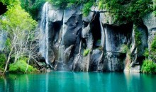 绿渊潭绿渊潭位于吉林省长白山国家自然保护区,因池水碧绿深窘而得名。绿渊潭瀑布飞流直下,最高落差达26米,瀑水落于巨石而四渐,而后流入深潭。每逢雾起,潭上水雾弥漫,与高山岳桦、旷古巨石浑然而一体,美不胜收,恰似人间仙境。