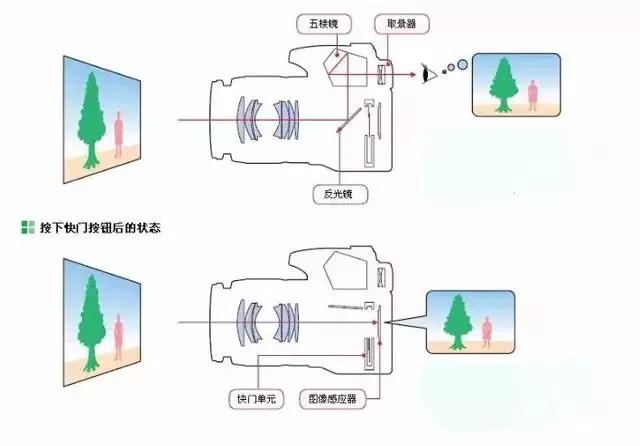 我们来总结一下,单反相机是光线通过镜头,然后通过反光镜、五棱镜的反射,最后到达眼睛,速度非常快。而单电相机是使用了半透反光镜和五棱镜,我们在显示屏看到的景物,实际上在传递的光路过程中有损失,所以显像就很滞后。因为单电相机的显像需要经过两次信号转换,另外,电路传递也需要一定的时间。