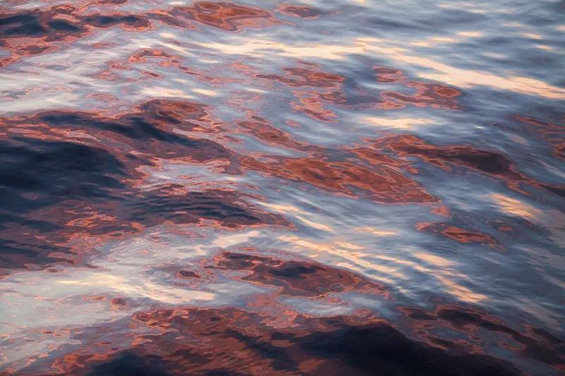 当环境景物的色彩比较鲜艳、丰富时,你好可以尝试专注于拍摄水面波纹本身,斑驳的色彩与波纹结合会形成漂亮的抽象图案: