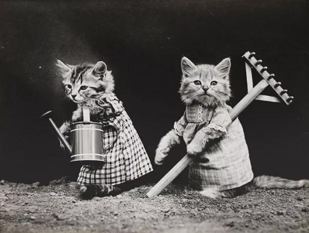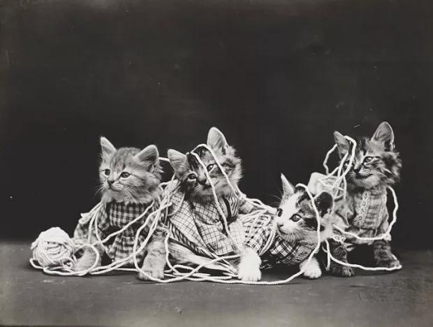 或许你和摄影君一样好奇,他是否涉嫌虐待、“摆拍”这些小猫咪?在没有高速快门和感光度的年代,他是如何完成拍摄的?