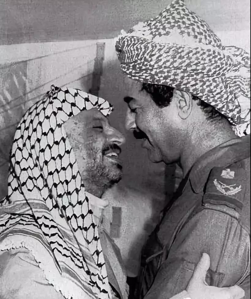 1980年,萨达姆与阿拉法特。