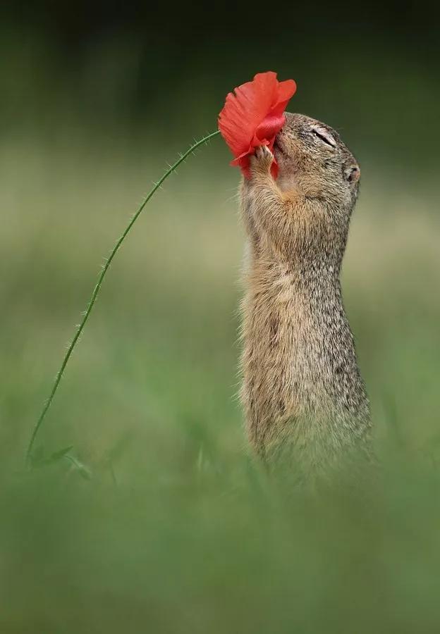 于是我们有幸见到了小松鼠细嗅花香的一面、红狐狸傻乎乎憨态可掬的笑容、咬着坚果不放松的红松鼠那矫健的身姿……