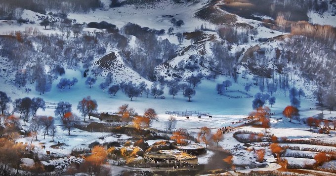 冬季的乌兰布统俨然是一个白雪皑皑,银装素裹的冰雪童话世界,越野车进入塞罕坝森林公园时,道路两边都是鳞次栉比的笔直的参天大树(估计是松柏类),白茫茫的一片,甚至有幸一睹雪白的狐狸,或许是太冷了外出觅食,但是并没有停留很久就不见了踪迹,让人怀疑是否出现过。这里没有雪乡著名的冰雪蘑菇屋,但这里有小河头的雪馒头;这里没有哈尔滨五彩缤纷的冰雕王国,但这里有小巧精致的冰灯。这里的雾凇甚至比我12年在雾凇岛看到的都要壮观,唯美。