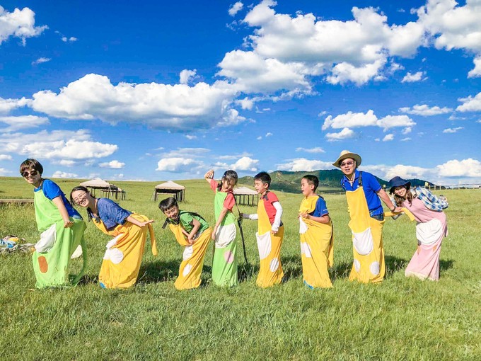 四方绿茵场,看不到边际,望不到观众席;趣味草原运动会,滑沙、拔河、袋鼠跳、鸿运彩球、碰碰球……我没想到,在没有围栏的草原踢球是这样的酣畅淋漓;我没有想到,在草原上放风筝只能感叹线不够长;我没想到,在草原还能玩这么多游乐项目。这里简直就是一个草原迪士尼,儿童的天堂乐园,甚至连大人也能在这里找回童年的乐趣。