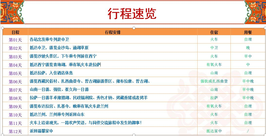 因专列涉及各个铁路局,最终出发时间、行程、价格以铁路总公司最终调令为准。若专列达不到出行人数,我社有权改为正班!