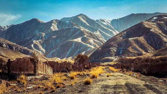 【阿克塞石油小镇】。石油小镇原本是一个连名字都没有,只有一个地级市的代码404的神秘小镇,1983年遭到不明原因的袭击,荒漠中的繁华小镇一夜之间变成了一座空城。后来因为大热电影《九层妖塔》在这里取景,才渐渐为人所知。现在走在小镇上,还依稀可见当初的幼儿园、医院、礼堂、清真寺、教堂等建筑的废墟,衬在一望无垠的戈壁上,显得更加苍凉玄幻。石油小镇就像一座界碑,前方是沙漠,后方则是大片的草原和神圣的雪山,照片上雪山显的很远,实际上就在眼前,从废墟中看去,仿佛罪魁祸首就是这座绵延的大山...
