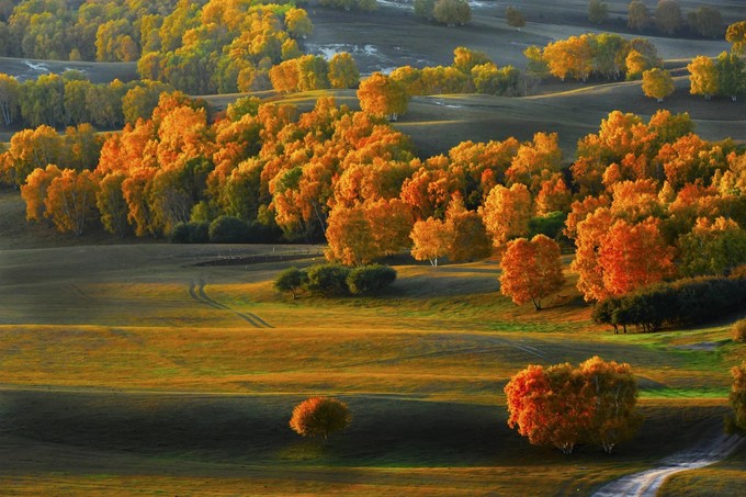 连绵起伏的小丘陵上,白桦林,草原,沙地,湖泊,花海,任性组合,时而簇拥抱团,时而相互独立,如此美景,只有来了才能体会!不翻过眼前的山丘,永远不知道另一边是什么景象,可爱的马鹿、狍子、狐狸、田鼠、草原黄鼠偶尔会探个头点缀画卷。