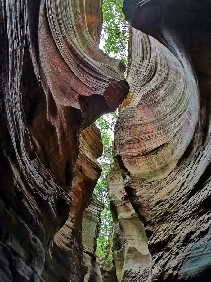 桦树沟是景色最美最精华的峡谷,全长300米左右,沟里游客很多,多到走不动路。中午11点至下午2点光线最好,因为峡谷顶部狭窄,如果没有光线谷内比较幽暗。桦树沟上窄下宽, 和龙巴沟相反,岩石更有曲线和纹理,色彩也更丰富,配合恰好的光线,绝对能出大片。