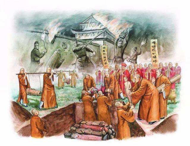 后来,太武帝听取三朝元老崔浩的建议,改信寇谦之创立的天师道教,开始彻底排斥佛教。也是倒霉,长安的一所寺庙后来牵连到盖吴起义之中,太武帝大怒,加上崔浩的推波助澜,正式开启了大规模的灭佛行动:长安几乎所有的沙门中人被诛杀,北魏全国的经文、佛像和寺庙被焚毁。
