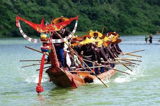 扒龙舟是端午节的一项重要活动,是古代龙图腾祭祀的节仪,乃遗俗也。据《河姆渡遗址第一期发掘报告》称,早在7000年前,远古先民已用独木刳成木舟,并加上木桨划舟。龙舟最初是用单木舟上雕刻龙形的独木舟,后来发展为木板制作的龙形船。